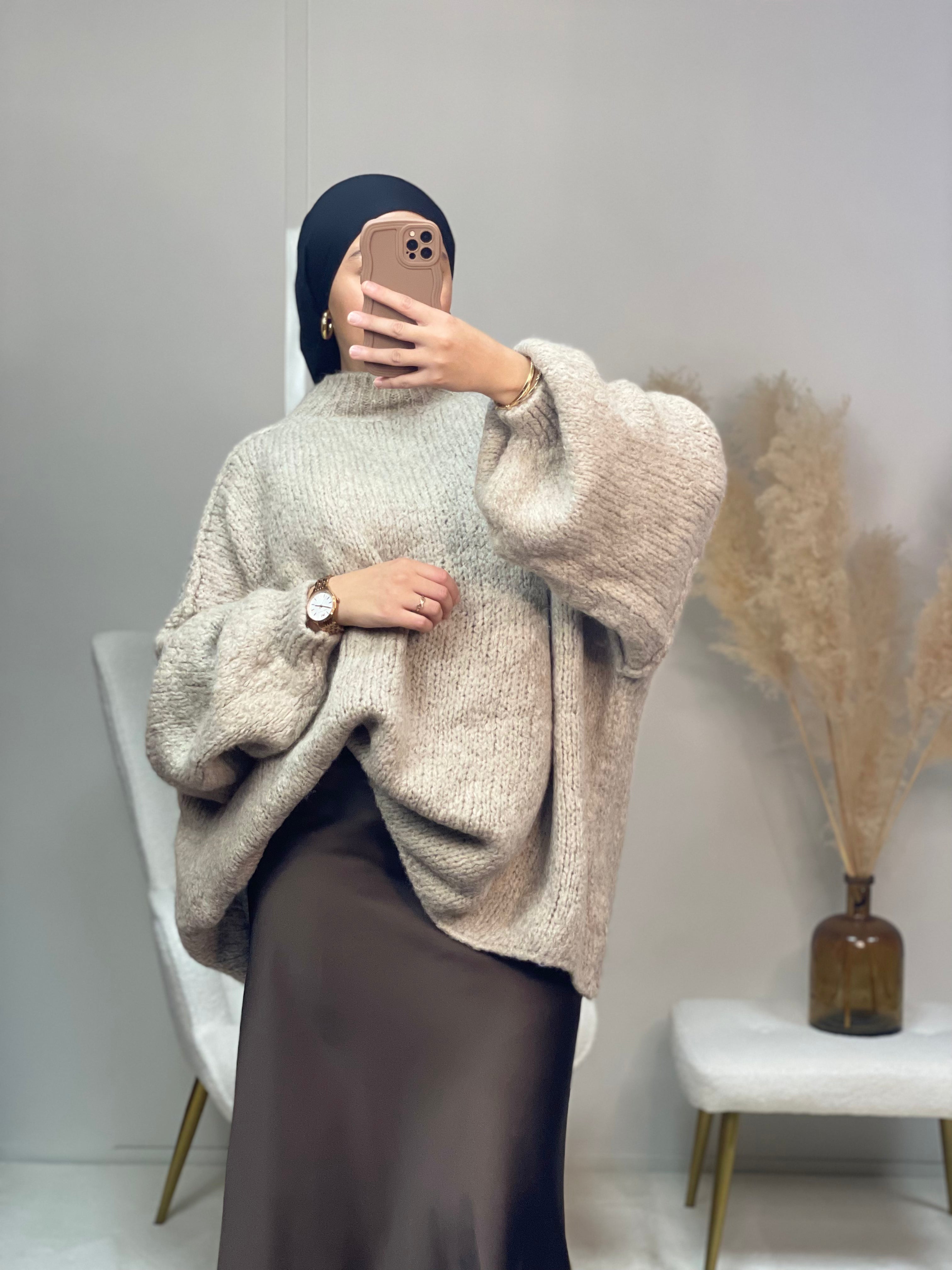 Le pull est assez oversize et convient jusqu’à la taille 44/48.