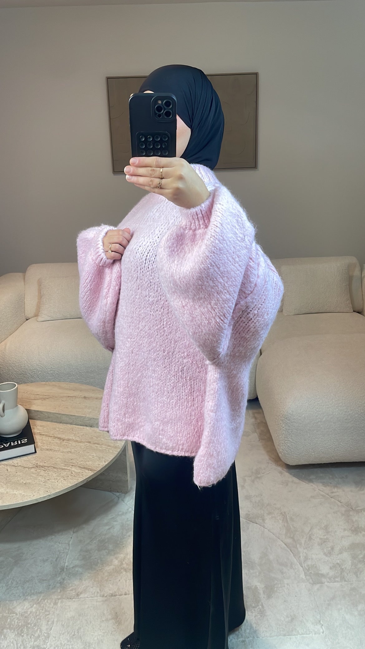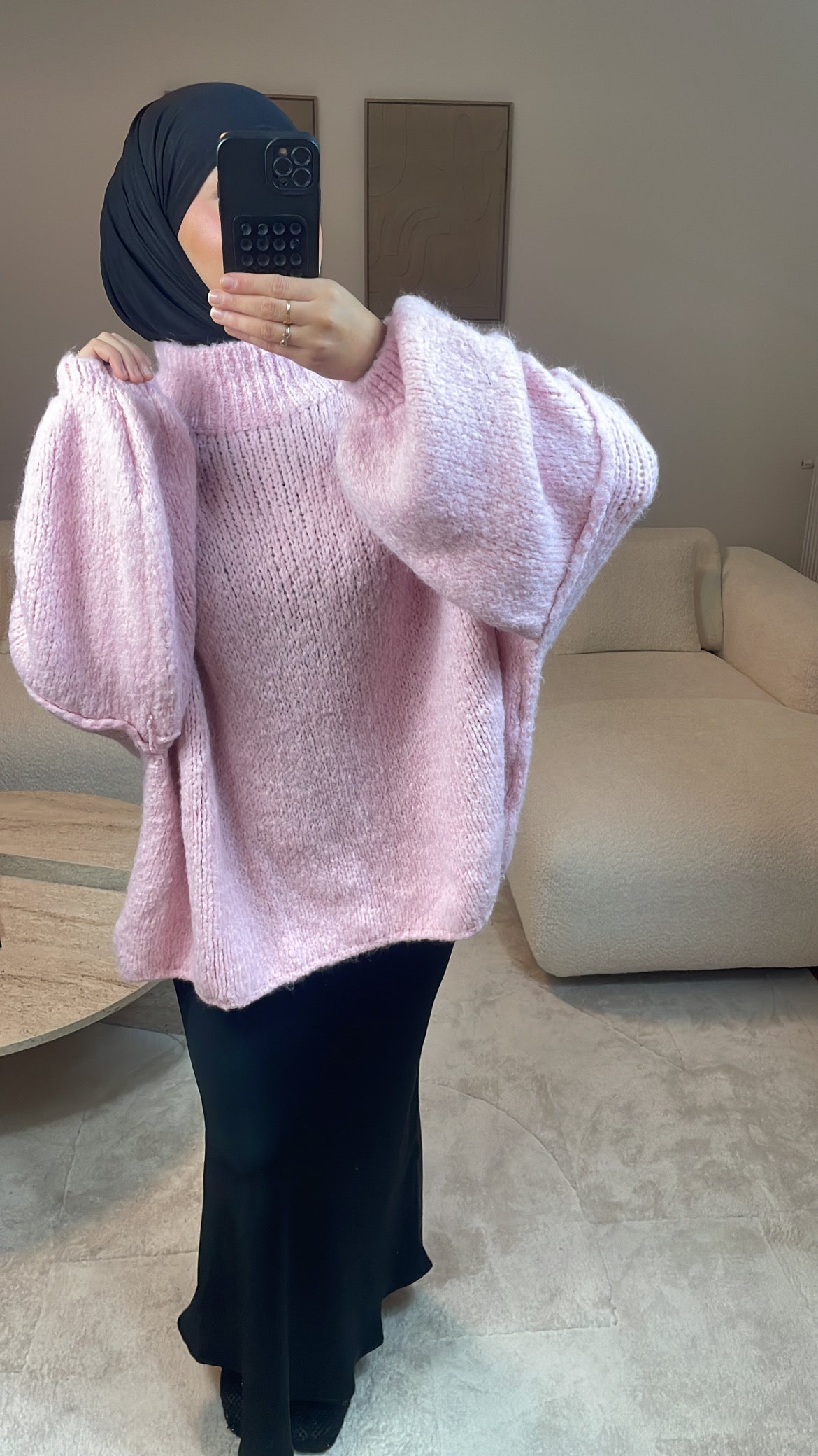 Le pull est assez oversize et convient jusqu’à la taille 44/48.