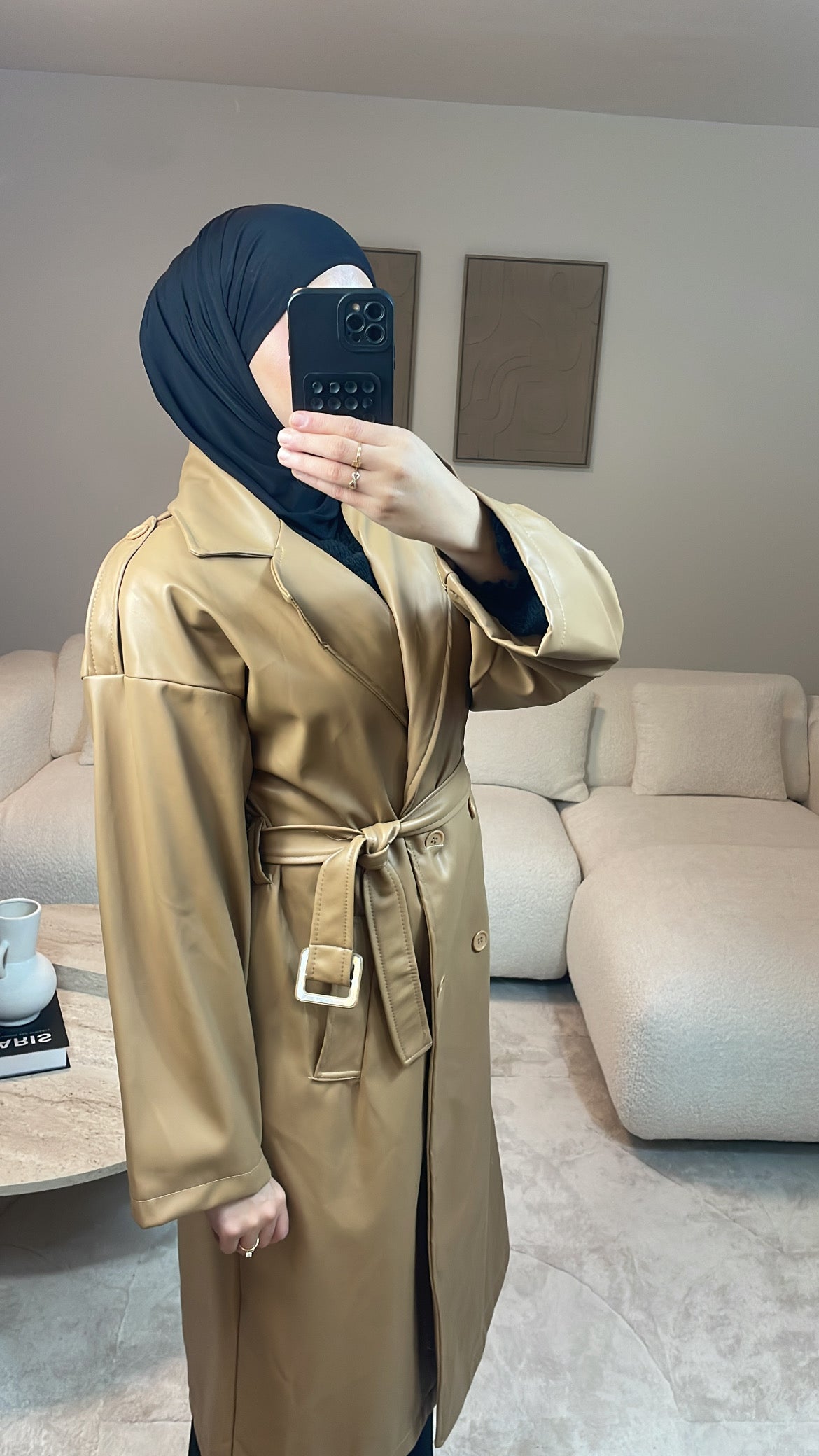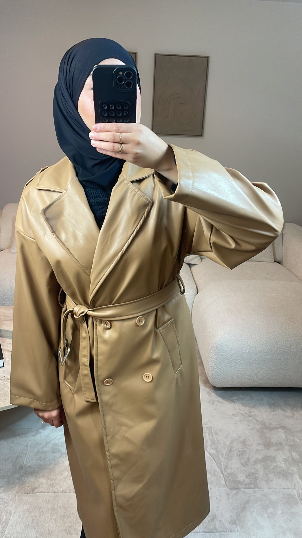 TRENCH SIMILI CUIR CAMEL